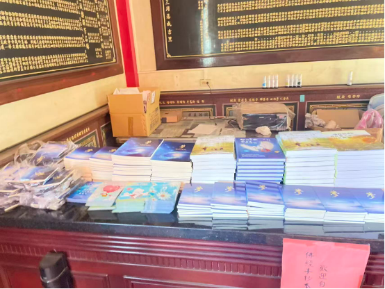 宗教场所中的最后一类,就是各种五花八门的大众宫庙,在台南分布很广,大的宫庙人流量颇大,都是来烧香祈福的。这些宫庙管理比较松散,一般都设有结缘法宝的书架,我们的做法是进去逛一圈,找到主事的人,介绍我们是从香港远道而来,想赠送一些公益书籍给大众结缘,80%我们拜访的宫庙只要有地方,都允许我们放置法宝。按数量来说,这些大众宫庙是吸收了我们最多法宝的一个渠道。