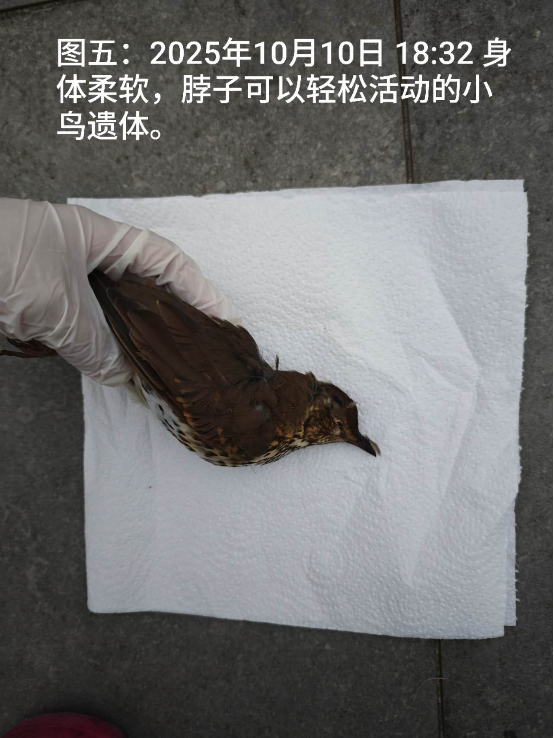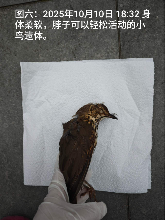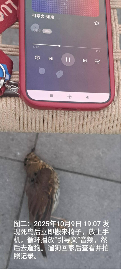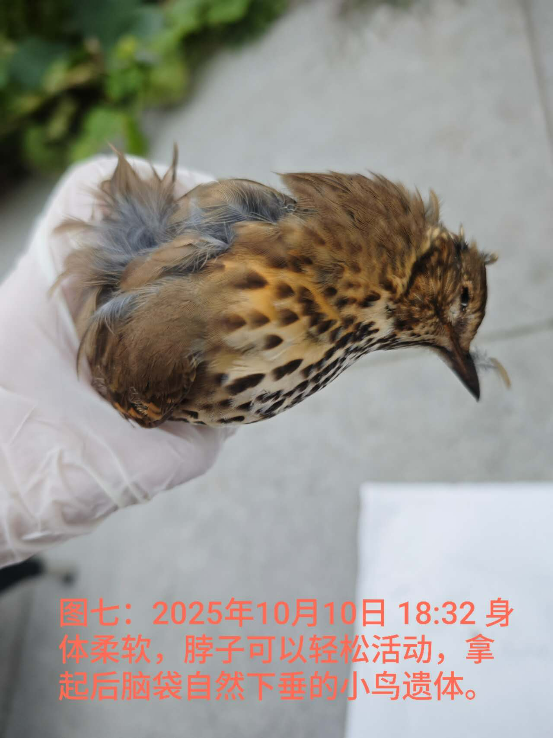 因为记得老师说过动物的案例要用图片、视频记录下来,所以这次拍了很多照片(图一到七),并录了两段刚从地上捡起小鸟遗体时的视频。