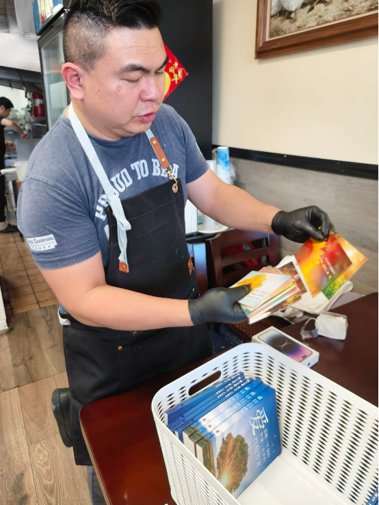 我也开始踏出家门,正式走入社区,跟不相识的人分享推荐书籍与卡片。今天跟提前联系好的中文学校与华人餐馆进行赠书活动,整个过程中伴随着与神同在的温暖、喜悦与激动,那种光明与荣耀是我的灵魂三生有幸。