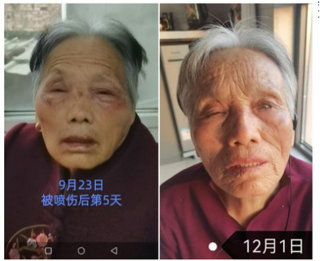3.妈妈面部被盐酸喷伤后的照片。