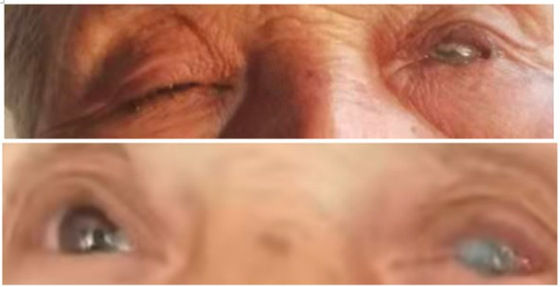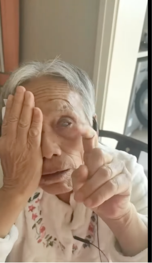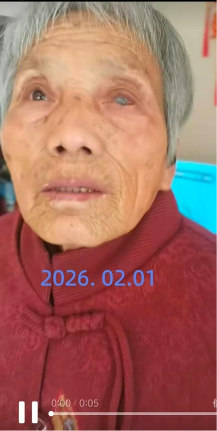 5.2026年2月1日拍摄视频2的截图,左眼的白膜越发透明。(妈妈说这个左眼白斑去年12月份时曾脱落过一次,眼睛有时能看见,还曾穿针线,但过几天白斑又起了,目前情况不稳定。)