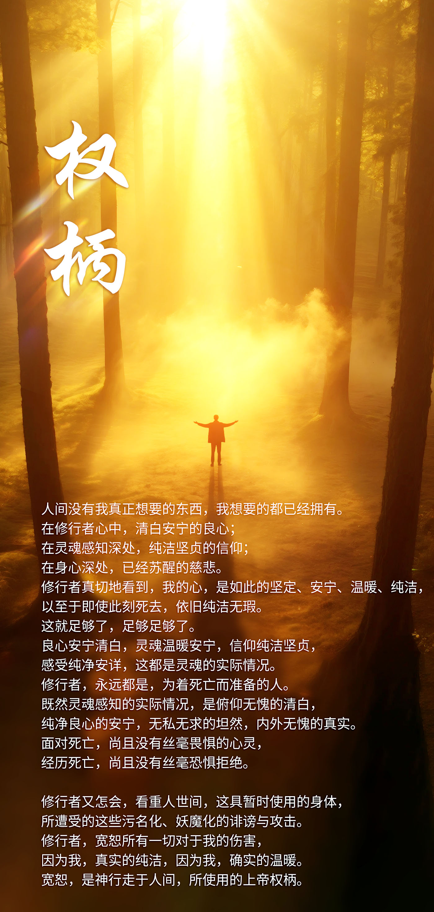 修行者,宽恕所有一切对于我的伤害,因为我,真实的纯洁,因为我,确实的温暖。