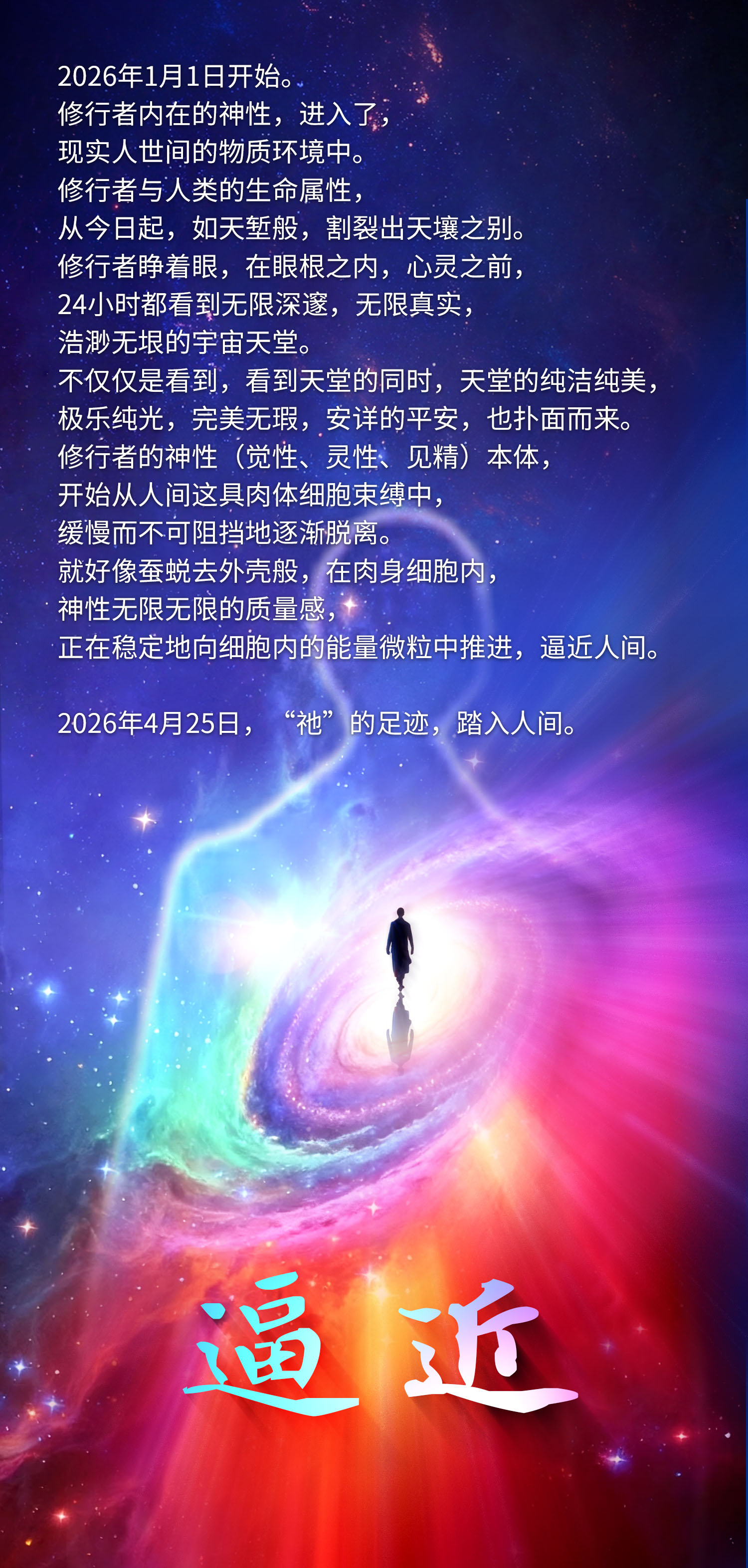 就好像蚕蜕去外壳般,在肉身细胞内,神性无限无限的质量感,正在稳定地向细胞内的能量微粒中推进,逼近人间。